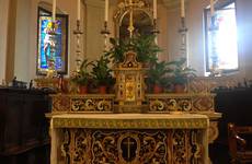 Sotto vetro, in una imponente cornice barocca, l'immagine della Miracolosissima e molto venerata Madonna del Rosario, un affresco proveniente dalla chiesa di Santa Margherita. A Santa Margherita vergine e martire è dedicata la stessa parrocchiale.