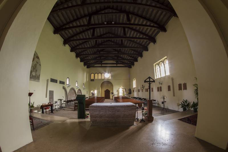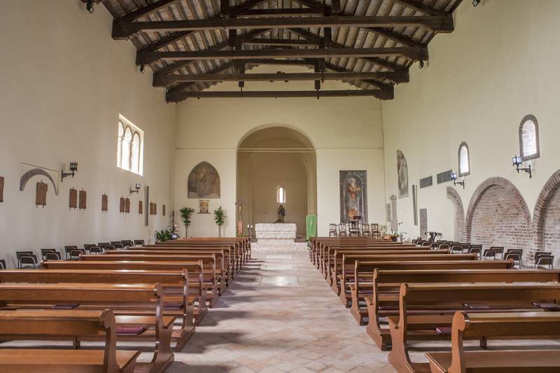 La chiesa, che conserva intatta la sua bellezza romanica, con influenze gotiche però molto bene armonizzate, oggi è semplicemente la chiesa parrocchiale del paese. Un tempo era il tempio di un'abbazia benedettina la cui esistenza è testimoniata a partire dal 1503. Di quella abbazia, che già nel secolo XVI non era più in possesso dei religiosi, non si ha alcun resto. Rimane appunto lo splendido edificio della chiesa di cui si può godere un sorprendente spettacolo, se osservata dall'argine del Po, venendo da Sermide.