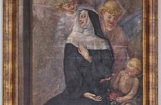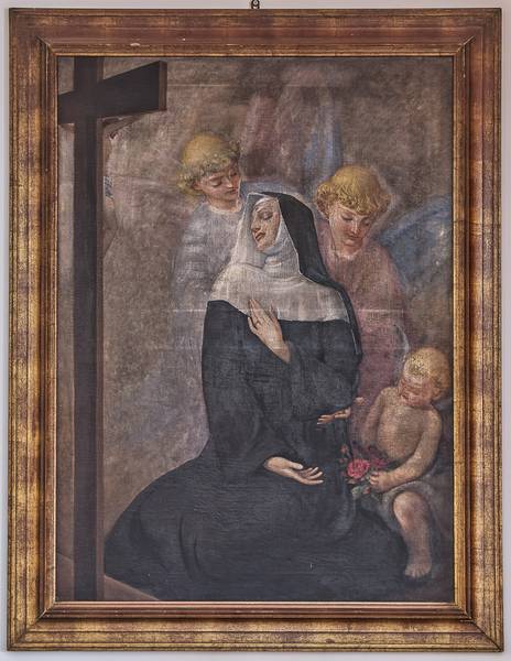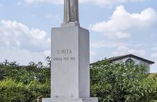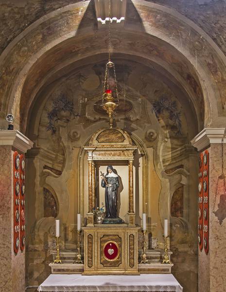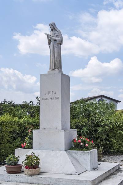Santa Rita nacque a Roccaporena (Cascia) verso il 1380. Secondo la tradizione era figlia unica e fin dall’adolescenza desiderò consacrarsi a Dio ma, per le insistenze dei genitori, fu data in sposa ad un giovane di buona volontà ma di carattere violento. Dopo l’assassinio del marito e la morte dei due figli, ebbe molto a soffrire per l’odio dei parenti che, con fortezza cristiana, riuscì a riappacificare. Vedova e sola, in pace con tutti, fu accolta nel monastero agostiniano di santa Maria Maddalena in Cascia. Visse per quarant’anni anni nell’umiltà e nella carità, nella preghiera e nella penitenza. Negli ultimi quindici anni della sua vita portò sulla fronte il segno della sua profonda unione con Gesù crocifisso. Essendo immobile a letto, ricevette la visita di una parente la quale, nel congedarsi, le chiese se desiderava qualcosa della sua casa di Roccaporena; Rita rispose che le sarebbe piaciuto avere una rosa dall'orto; la parente obiettò che si era in pieno inverno e quindi ciò non era possibile. Ma Rita insisté. Tornata a Roccaporena, la parente si recò nell'orticello e, in mezzo ad un rosaio, vide una bella rosa sbocciata. Stupita, la colse e la portò da Rita a Cascia la quale, ringraziando, la consegnò alle meravigliate consorelle. Così la santa vedova, madre, suora, divenne la santa della ‘Spina’ e la santa della ‘Rosa’; per questo nel giorno della sua festa questi fiori vengono benedetti e distribuiti ai fedeli. Morì il 22 maggio 1457. Invocata come taumaturga di grazie, il suo corpo si venera nel santuario di Cascia, meta di continui pellegrinaggi. Beatificata da Urbano VIII nel 1627, venne canonizzata il 24 maggio 1900 da Leone XIII. E’ invocata come santa del perdono e paciera di Cristo.