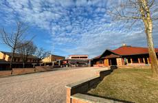 La chiesa dedicata a San Giorgio è una enorme “tenda” circolare in cemento a vista, cui le pareti costellate di finestroni in vetro trasparente, e il tetto in travi di legno lamellare, che convergono attorno al lucernario centrale, imprimono ariosità e leggerezza.