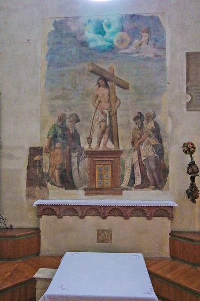 Vi si può ammirare una bella tavola raffigurante la Madonna e santi di F. Francia, nonché un importante affresco del principio del 500 attribuito a Costa il Vecchio e raffigurante il Redentore e Profeti.
