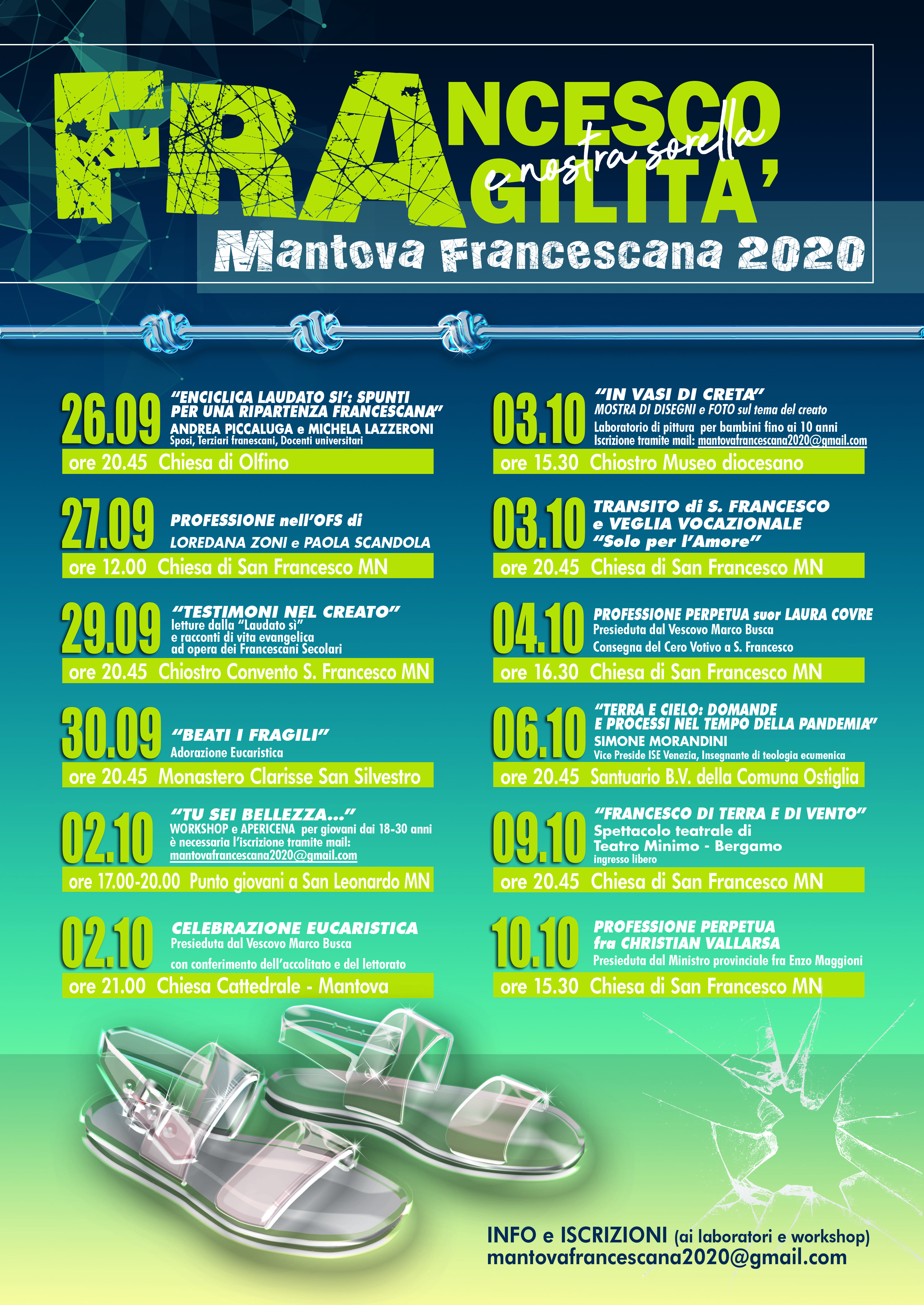 In occasione della festa di San Francesco (4 ottobre) la famiglia francescana di Mantova ha preparato un ricco programma di celebrazioni e incontri, raccolti sotto il nome di 'Mantova francescana 2020'.
